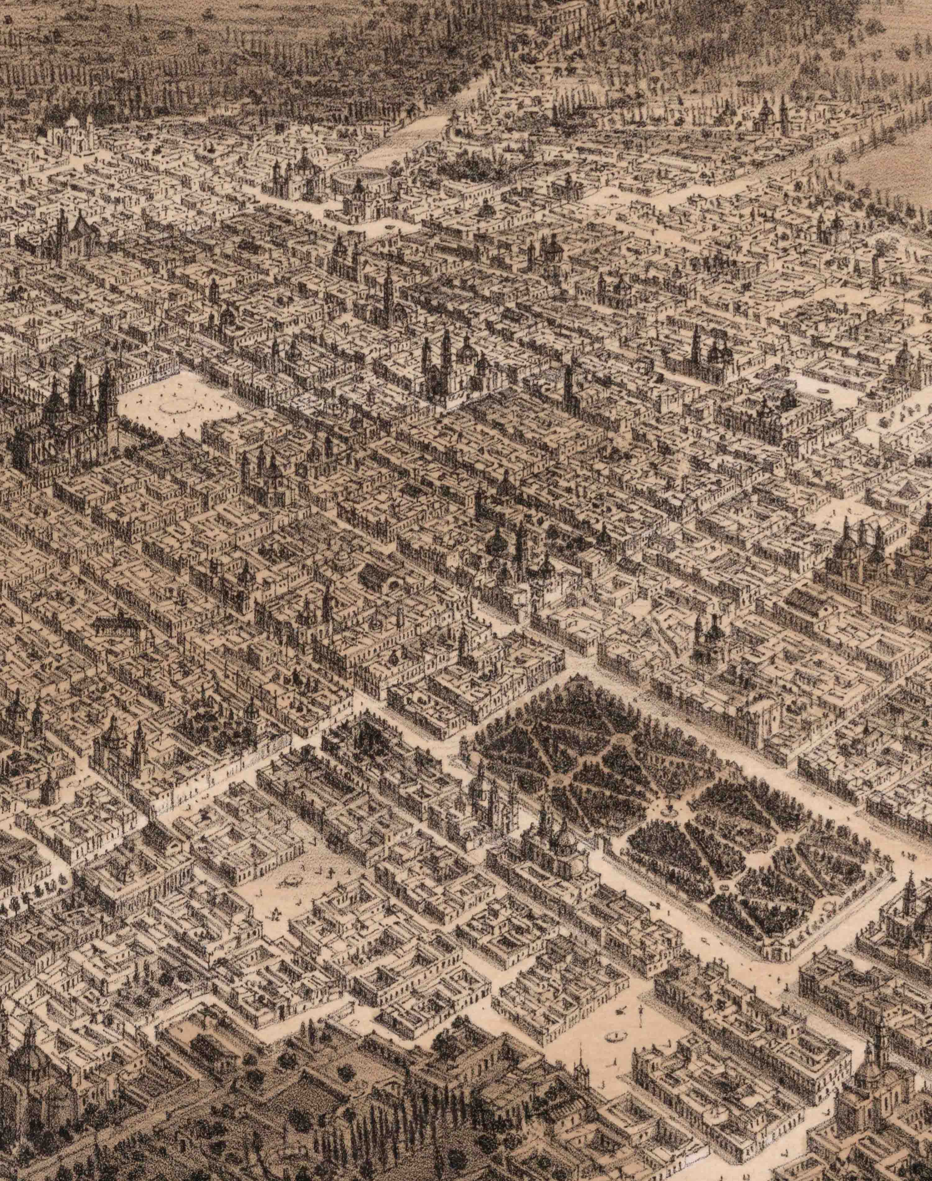 ¡Así era ciudad de México y sus alrededores en 1862! Es la vista desde un Globo aerostático, medio muy utilizado en la época. Colección de monumentos y paisajes dibujados al natural y litografiados por los artistas mexicanos. C. Castro, J. Campillo, L. Auda y G. Rodriguez, bajo la direccion de Decaen Editor. Establecimiento Litográfico de Decaen, Editor, Portal del Coliseo Viejo.